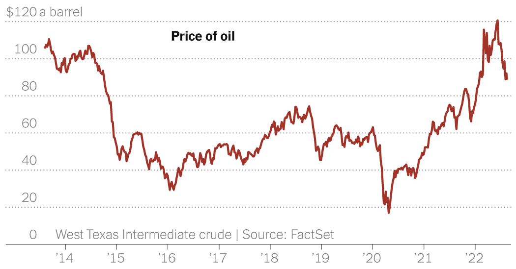 “(When) Will Oil Bulls Start Revising Forecasts Down?” was the title of a recent Citigroup commodities report. With a global recession “on the horizon,” it said, “which is more likely, a robust hurricane season, seeing prices skyrocketing? A return of Iranian barrels? Or a recession, with oil in the $60s by year-end/early 2023?” If a barrel of oil should drop to $60 a barrel, average gasoline prices in the United States would probably fall at least another dollar a gallon.