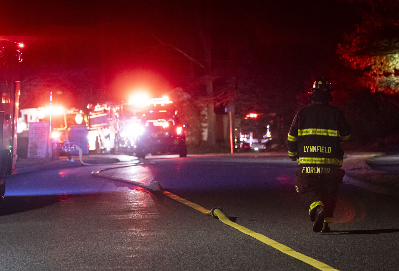 Area firefighters responded to a 3-alarm fire Thursday night at a large 2.5-story brick and wood house at 5 Stafford Road in Lynnfield. The first reports came in at 8:25 p.m., saying that the heavy fire started in the attic and spread to the garage and upper floors of the home. Witnesses saw dozens of […]