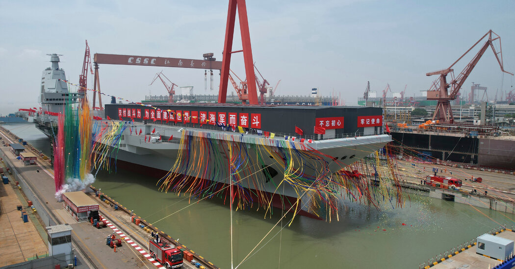 The ship, named Fujian after the Chinese province that sits across from Taiwan, is the navy’s most modern and resembles the latest American carrier, the Gerald R. Ford. Though the launch was widely expected, it comes amid heightened tensions in the South China Sea and days after China’s defense minister, Gen. Wei Fenghe, warned it would not back down from war with Taiwan if Taiwan took steps toward independence.