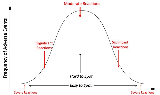 This was extremely concerning to me, because reactions to a toxin typically distribute on a bell curve, with the severe ones being much rarer than the moderate ones. This meant that if that many severe reactions were occurring, what I could already see was only the tip of the iceberg and far, far more less obvious reactions were going to be happening, to the point it was likely many people I knew would end up experiencing complications from the vaccine.