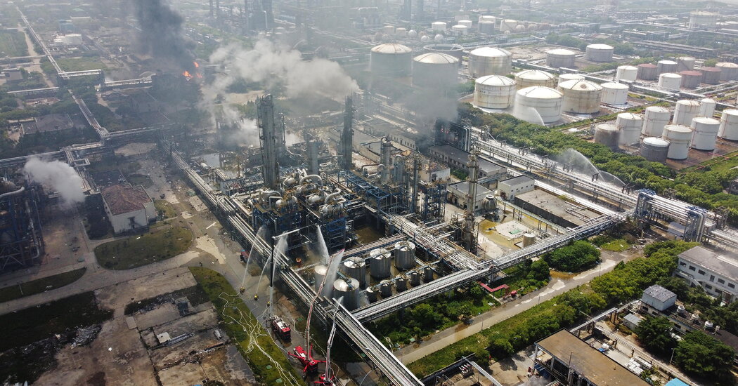 Videos on social media of the scene showed raging fires and huge plumes of dark smoke rising from what appeared to be part of Sinopec facility, which is separated from the district’s residential area.