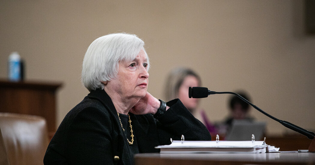 Treasury Secretary Janet L. Yellen said on Sunday that regulators were working throughout the weekend to deal with the fallout from the collapse of Silicon Valley Bank but tried to assure the public that the American banking system was “safe and well capitalized.”